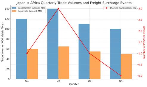 - Q1 (Jan–Mar): Post-harvest buying in Africa boosts imports from Japan, often tightening space.